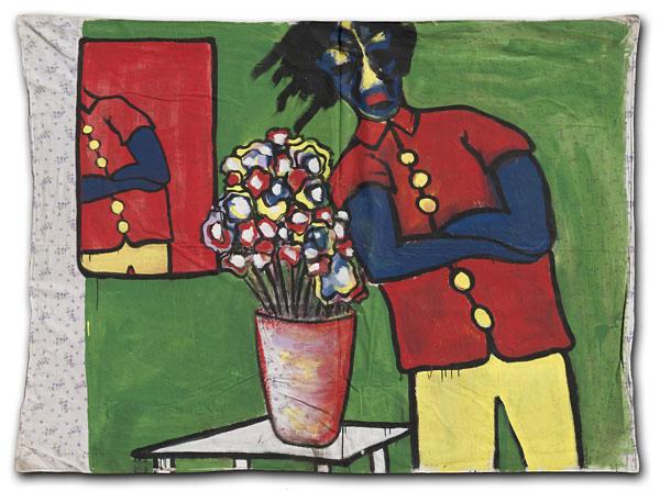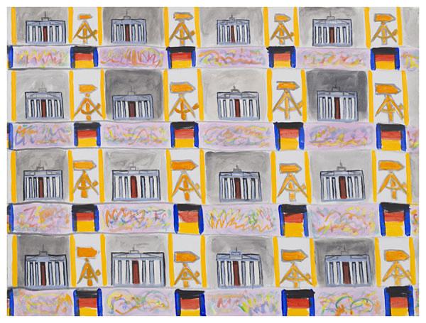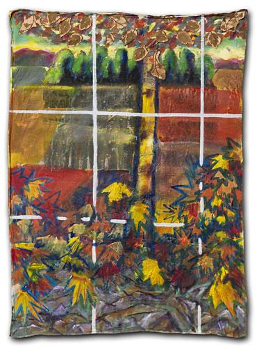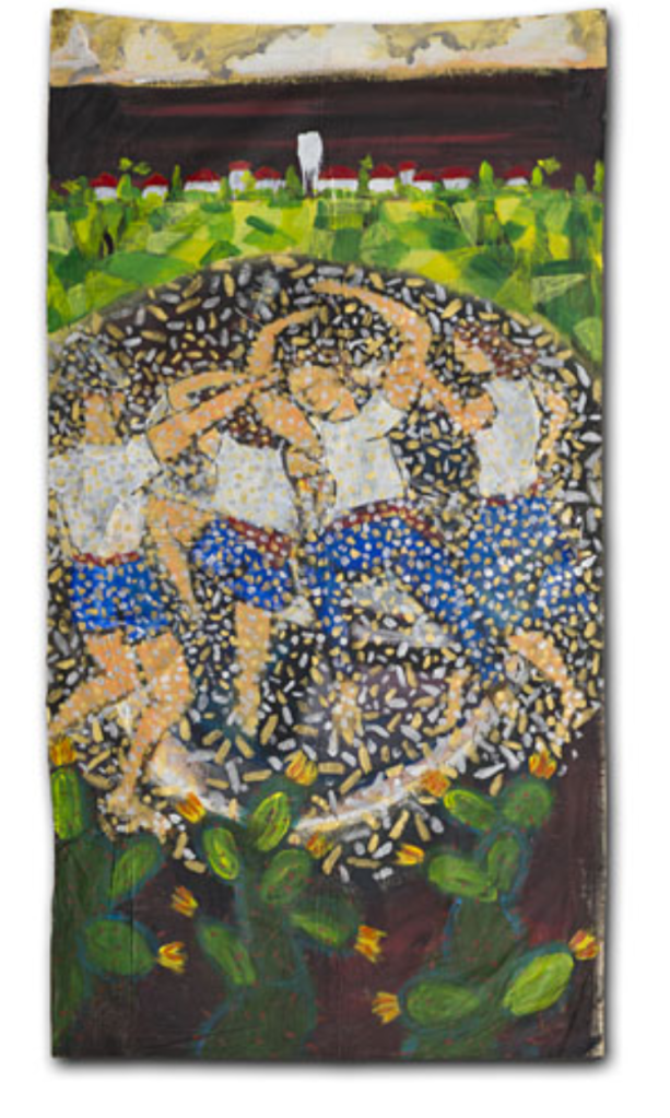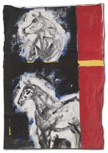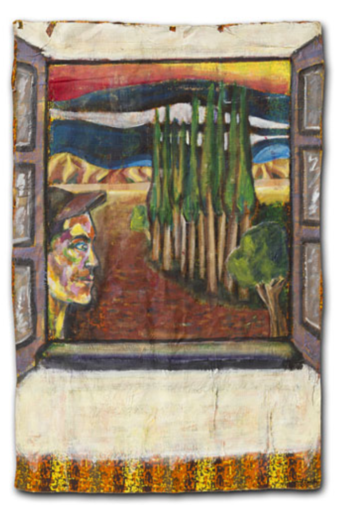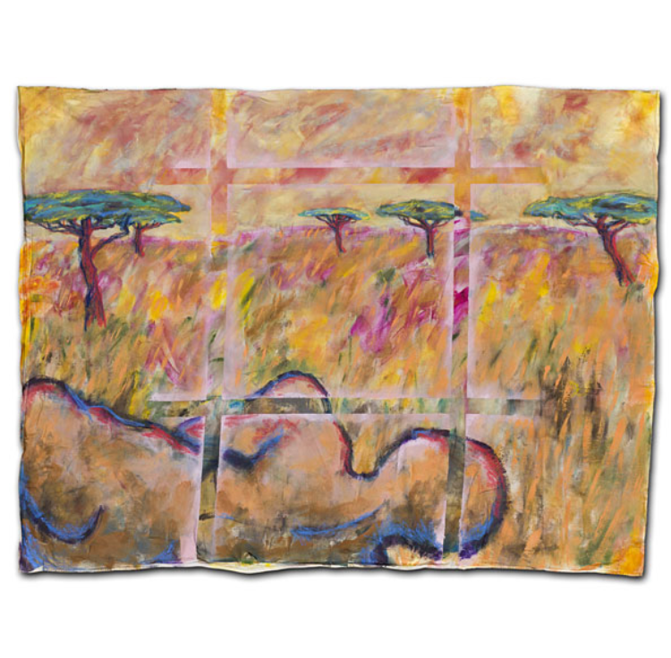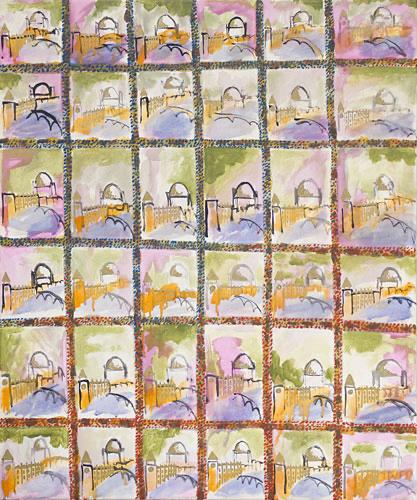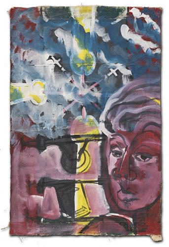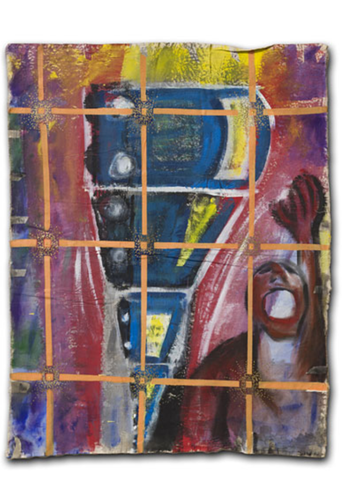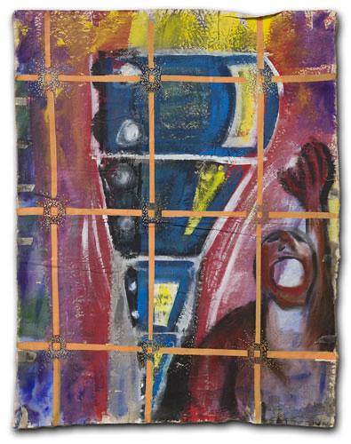 In one way or another, my art work is always composed of a multitude of glimpses. What appears solid, contains a hint of displacement and timelessness. Success of the painting depends on how the marks, brushstrokes and stains of paint interact with each other. A hard-edged outline can both contain and invite the eye into the picture. Elaborate strokes and dabs, heighten the decorative and (at the same time) can also attack complacency! Sentimentality is avoided and repetition (sometimes in registers or grids) abstracts the image. A rhythm and language of images are born, coalesce, and cohere to depict a single form. Some paintings hang loose, like flags – torn, battered, weathered and creased – highlighting and emphasizing both internal and external conflict. Other works on stretched canvas, lend themselves to a quieter, more analytical approach.