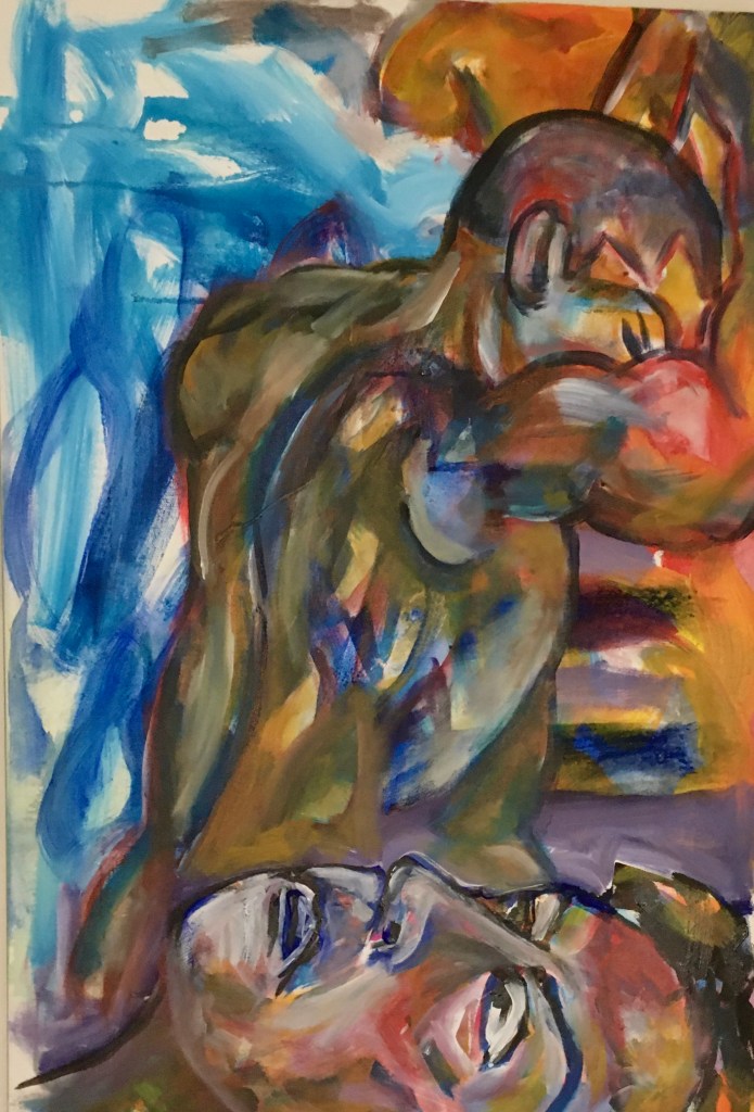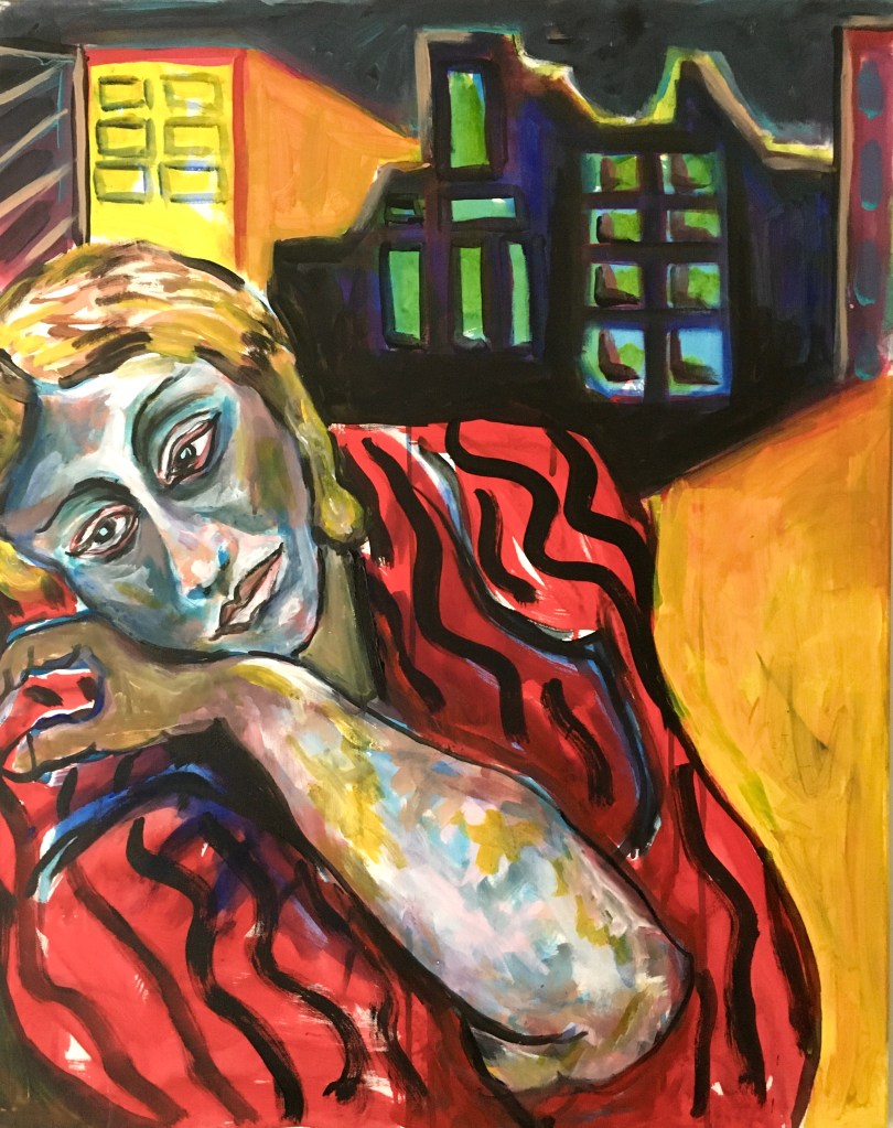 You know how you see something, stop, take a second look and then…begin to discern something else, something deeper maybe? Well, my paintings have that feeling, that certain something that you can’t quite put your finger on. Hidden in the folds and creases of material and paint, are things that you cannot put a name to. There may be secrets (and their purging or their perpetuation.) There is a clash of worlds amidst a multitude of glimpses, an explosion of conflicting forces, a ripple of moods. There is imbalance in the gestalt, paradoxes abound, an uneasy ceasefire of the senses unleashed. It’s enough to “feel” the reflection in a looking glass, to see the tension between two juxtaposed figures, to appreciate the negative space, to hear the beating of a hawk’s wings to know that a world of strong emotions and “canned” heat is just beyond the open window.